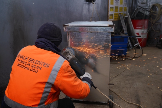 Ayvalık Belediye Başkanı Mesut Ergin, "Bu sayede belediye bütçemizden ciddi tasarruf sağlıyoruz. Enflasyonist ortamda piyasada yüksek maliyete satılan ve sürekli artan fiyatlar karşısında önlemimizi aldık. Galvaniz çöp konteynerlerini kendi bünyemizdeki atölyemizde daha uygun maliyetlerle üretiyoruz ve kendi öz kaynaklarımızı da en verimli şekilde kullanmış oluyoruz" dedi. HABER: MERVE İREVÜL