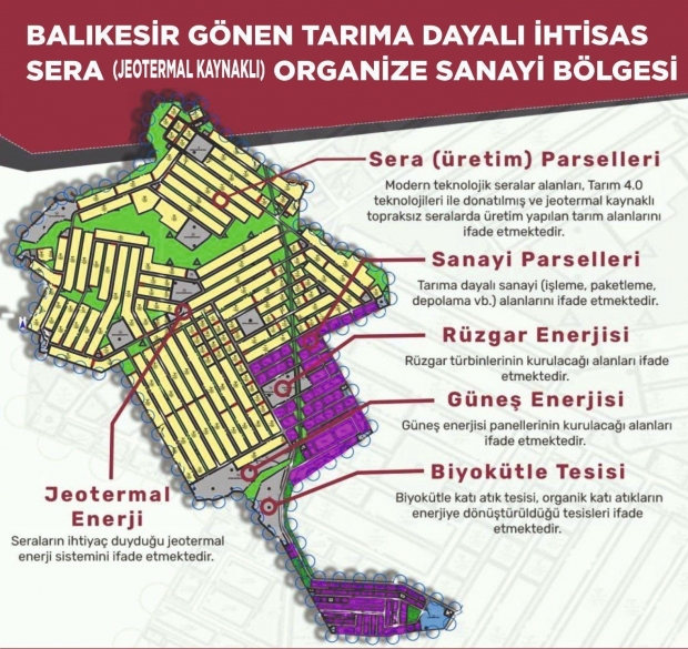 Dev Proje ile Gönen’ki jeotermal enerji kaynakları, rüzgar enerjisi, güneş enerjisi ve bölgede hali hazırda enerji üreten biyokütle ile biyogaz tesislerinin atık enerjilerinden elde edilecek ısı ile modern teknolojik seraların ısıtılması sağlanacak. Tohum, fide, sebze ve meyve yetiştiriciliğinin yapılacağı modern yüksek teknolojili seralar ve buna bağlı sanayi tesislerinin olduğu projenin gelecek olan 4 milyar 50 milyon TL’lik kamu yatırımıyla önemli bir ivme kazanması öngörülüyor.